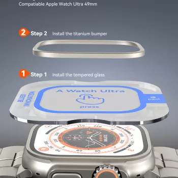 Apple Watch Ultra Screen Protector with 9H Glass & Titanium Bumper