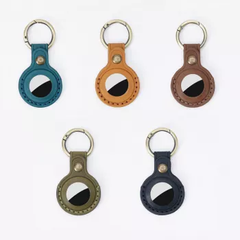 Genuine Cow Leather Case for Apple AirTags with Keychain and Pet Pendant